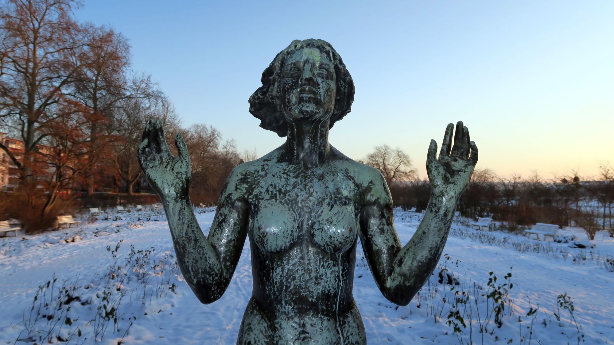 Die „Genesung“ lässt sich von der Kälte nicht stören und bleibt nackt.