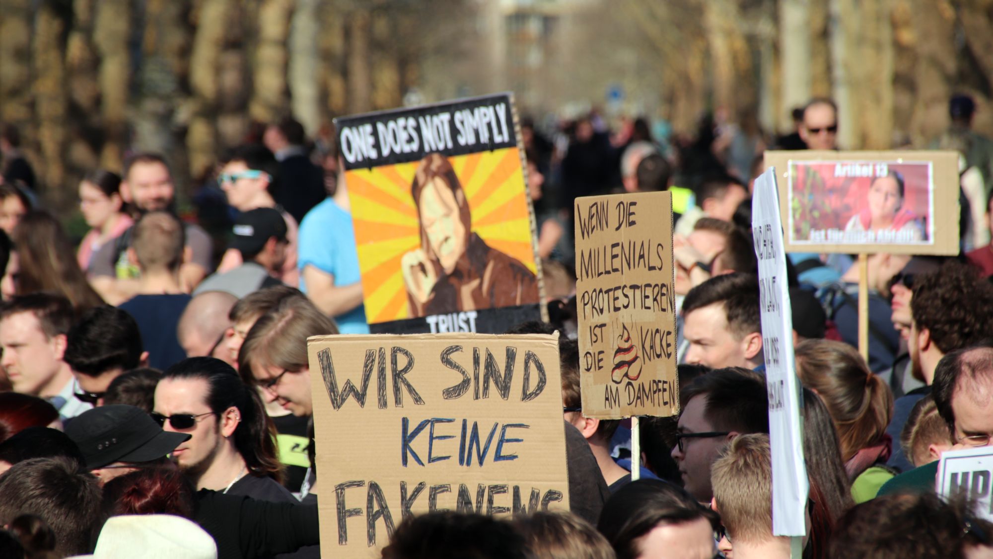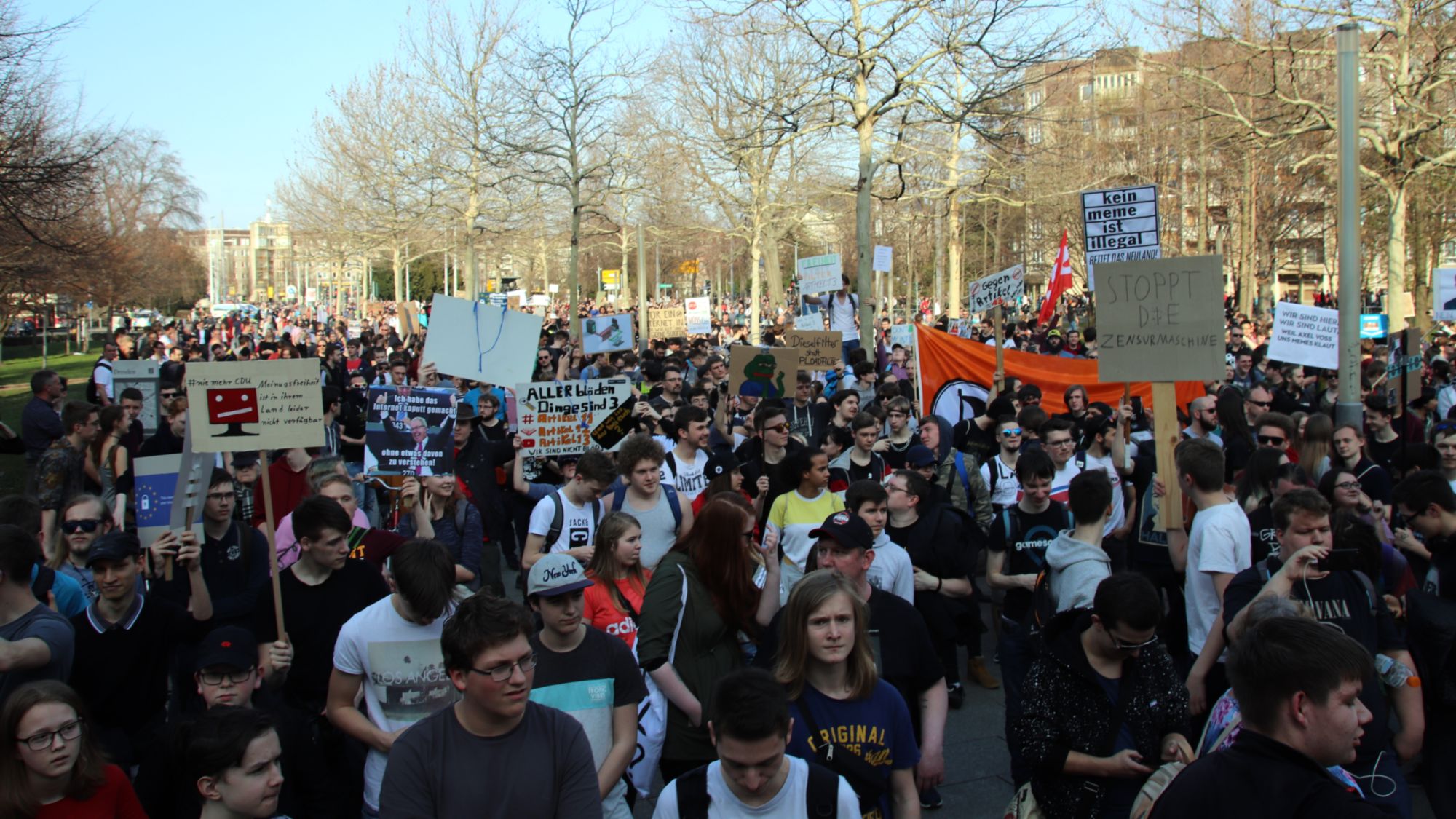 Seit 14 Uhr demonstrieren mehrere tausend, überwiegend junge Menschen für ein freies Internet und gegen die geplante Richtlinienänderung. (Neustadt-Geflüster vom 22. März).
