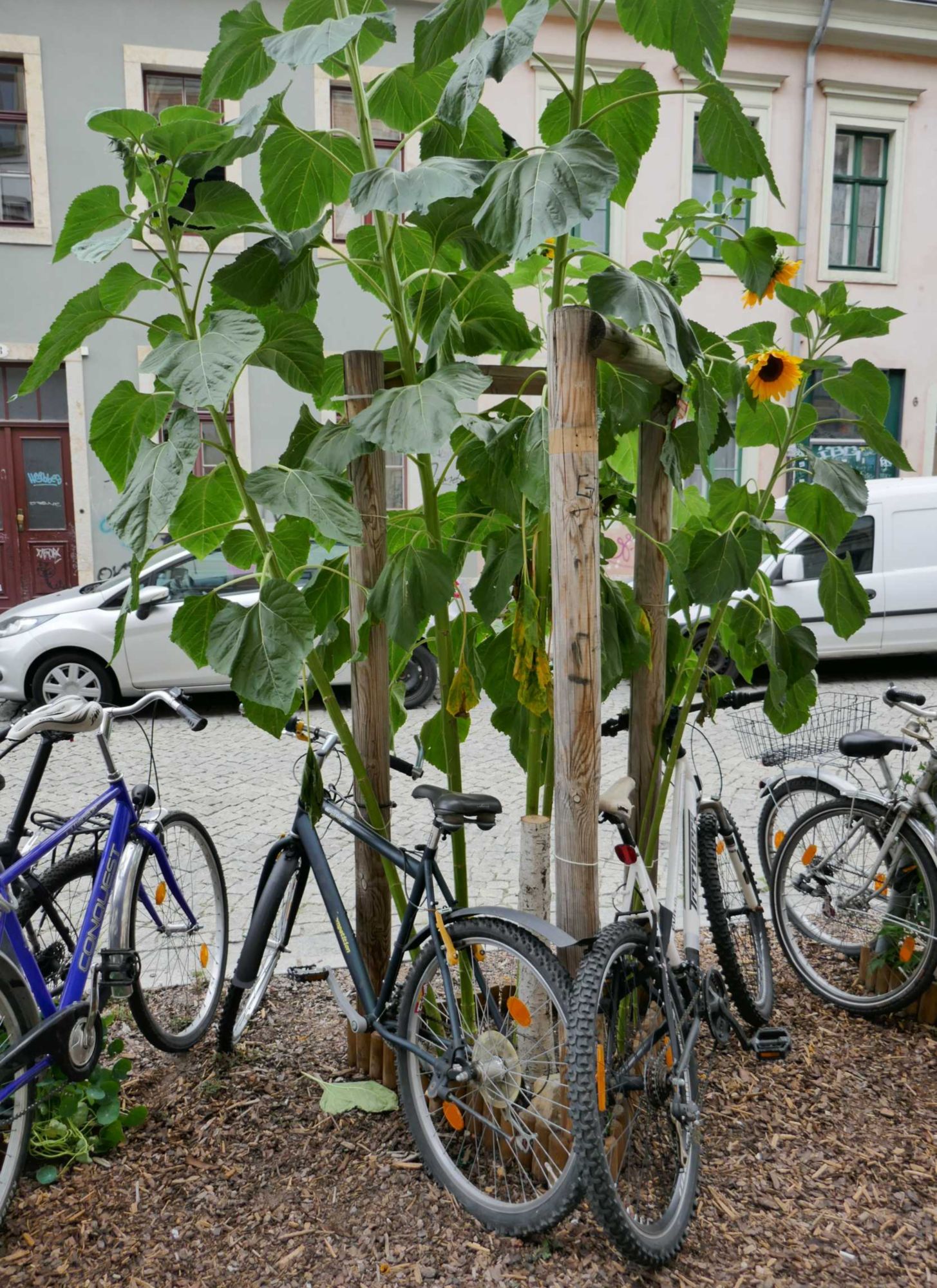 Die Stadt könnte man ruck zuck menschenfreundlicher gestallten, indem man jeden 5. PKW-Stellplatz durch Baumscheiben ersetzt.