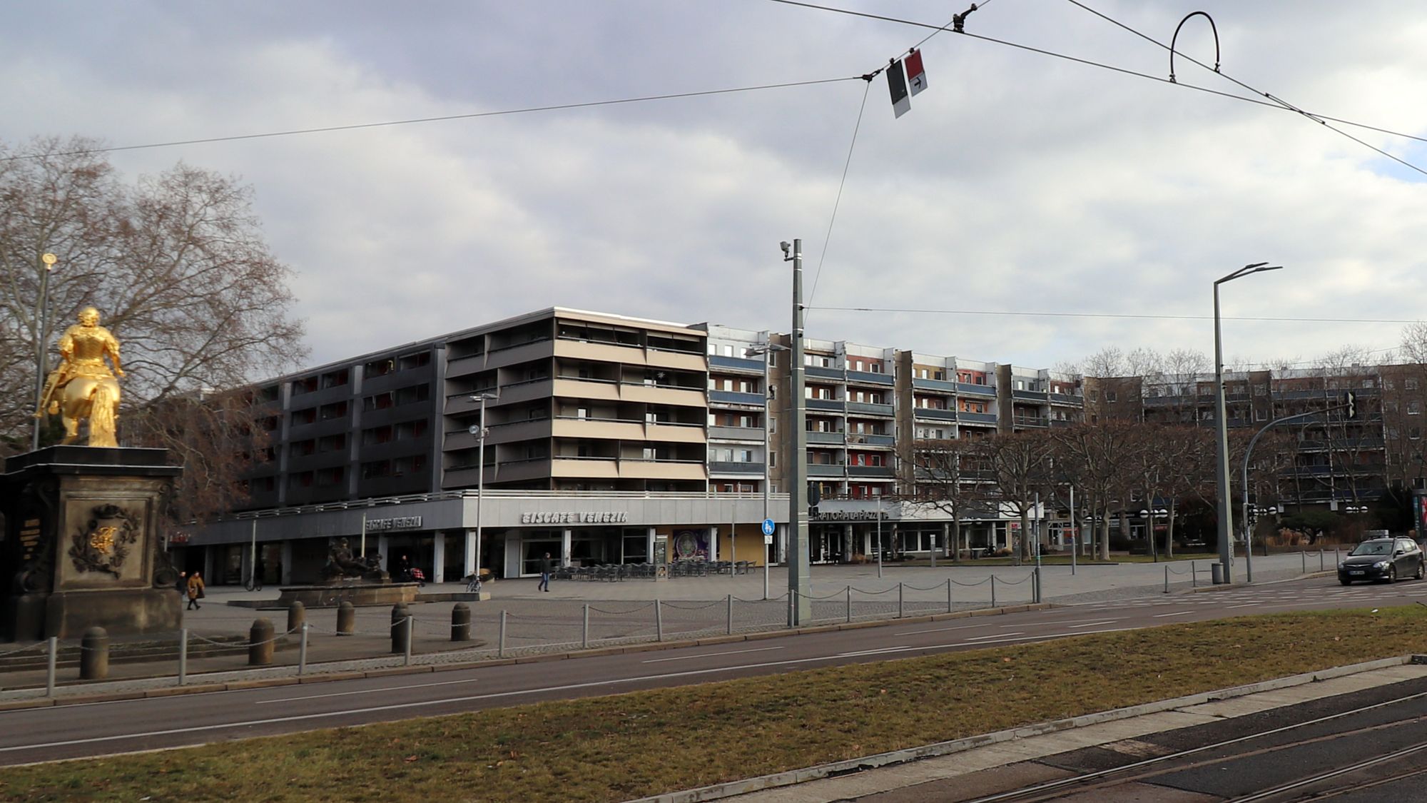„Wichtig ist uns, wir wollen sozial verträglich sanieren und niemanden vertreiben“, sagt Wuttke. Nun wolle man sich aber erst einmal die Sorgen, Nöte und Wünsche der Mieter anhören. Die Häuser rund um den Goldenen Reiter machen aktuell einen traurigen Eindruck. Die Plattenbauten wurden 1977 eingeweiht und seitdem noch nie grundlegend saniert.