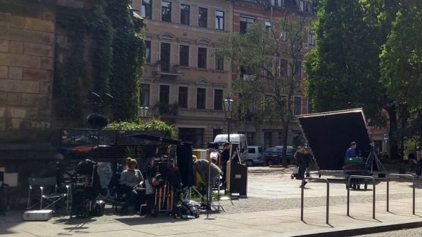 Nachdem in den vergangenen Dresdner Tatorten relativ wenige Neustadt-Bilder vorkamen, wird nun mal wieder kräftig in Dresdens schönstem Stadtteil gedreht. Heute war das Drehtteam tagsüber auf dem Martin-Luther-Platz unterwegs. Am Abend wird in einer Wohnung in der Hoyerswerdaer Straße gedreht.