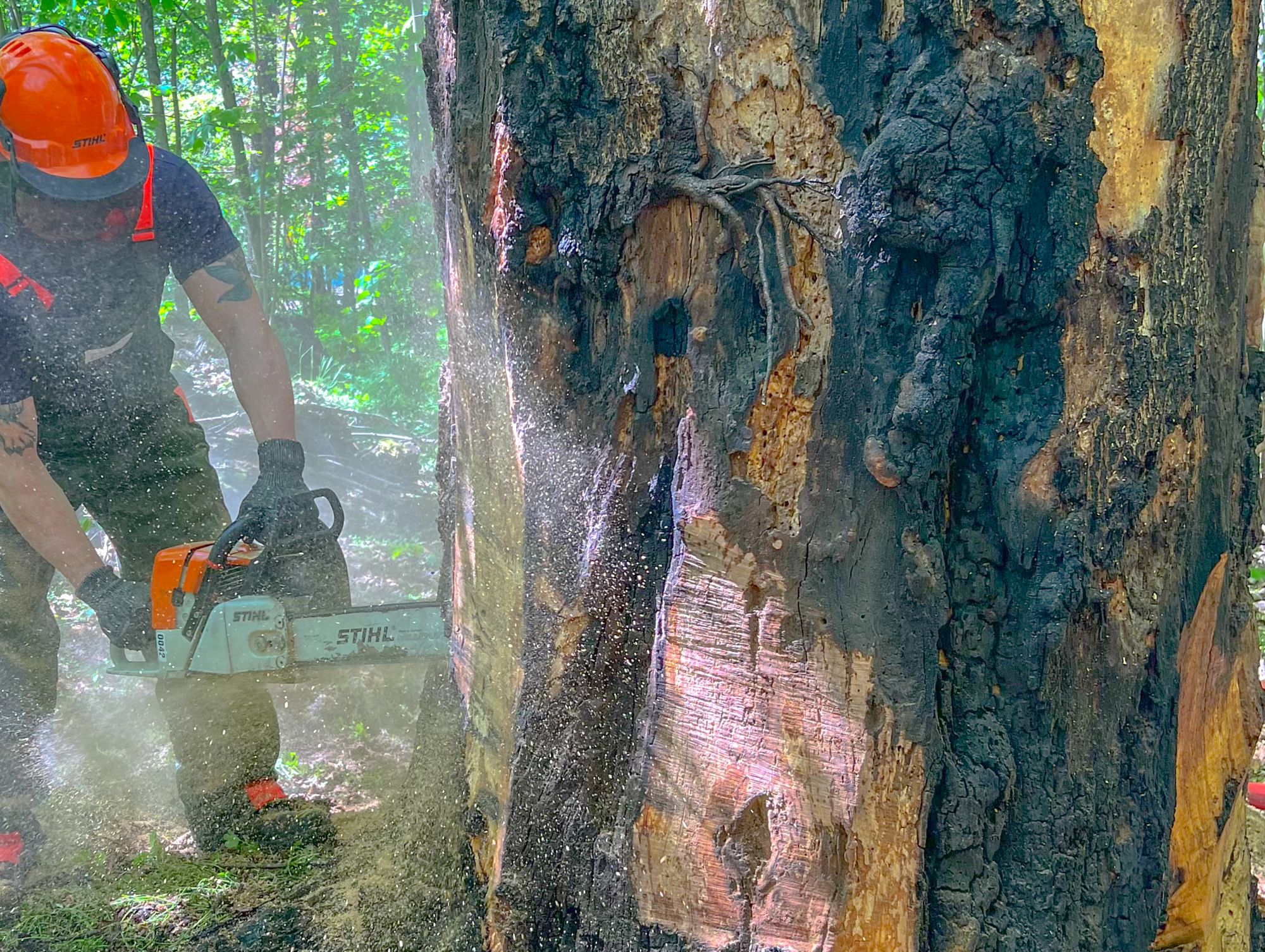 Um 12.51 Uhr ging es direkt weiter zur Fischhausstraße. Dort standen zwei Bäume in Flammen. Acht Einsatzkräfte der Feuer- und Rettungswache Albertstadt sowie der Stadtteilfeuerwehr Klotzsche sind im Einsatz, um die Brände zu bekämpfen und weitere mutmaßliche Brandstellen aufzuklären. Die Polizei wurde hinzugezogen und hat die Ermittlungen zur Brandursache aufgenommen.