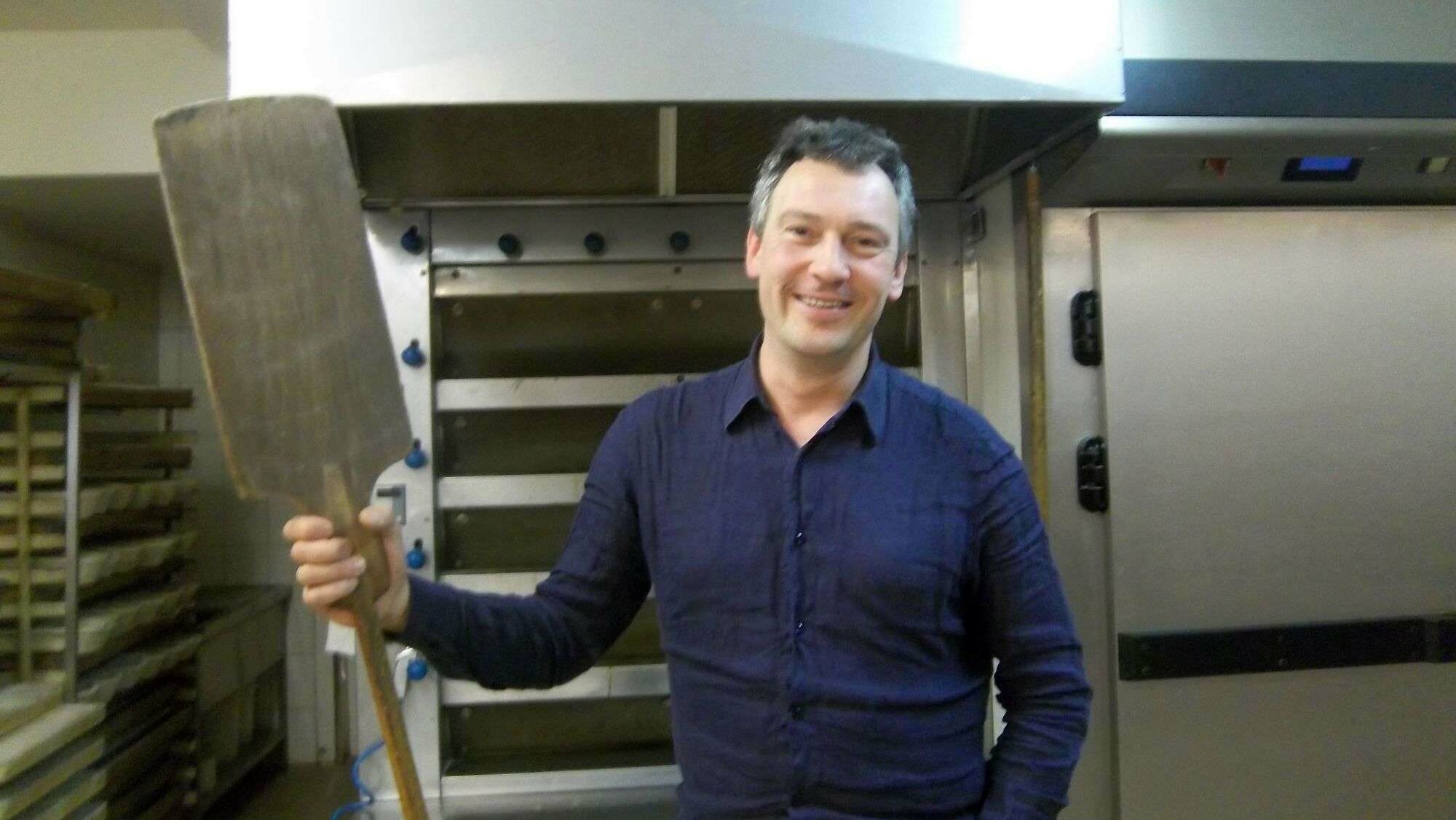 Wir werden von Grafs Handy unterbrochen. Es erschallt – na? – „Bakerman is beaking bread“, wird aber weggedrückt und ich darf die Heiligen Hallen der Backstube betreten. Der Graf stellt sich vor dem Ofen in Position, etwas unzufrieden mit seiner Alltagskleidung, packt er doch zur Osterzeit öfter in voller Montur selbst mit an. Aber in der stattlichen Haltung finden sich doch etliche Attribute eines eingefleischten oder besser eingebrödelten Bäckers wieder.