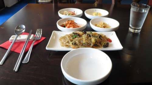 Und sie kommt auch gleich zum Wesentlichen und erklärt mir, was ich alles zu essen bekomme. Einen Bibimbap, dazu Japchae und Bulgogi. Zumindest den ersten Namen habe ich schon mal gehört, als ich vor einer kleinen Weile mal im „Maru“ auf der Förstereistraße war.