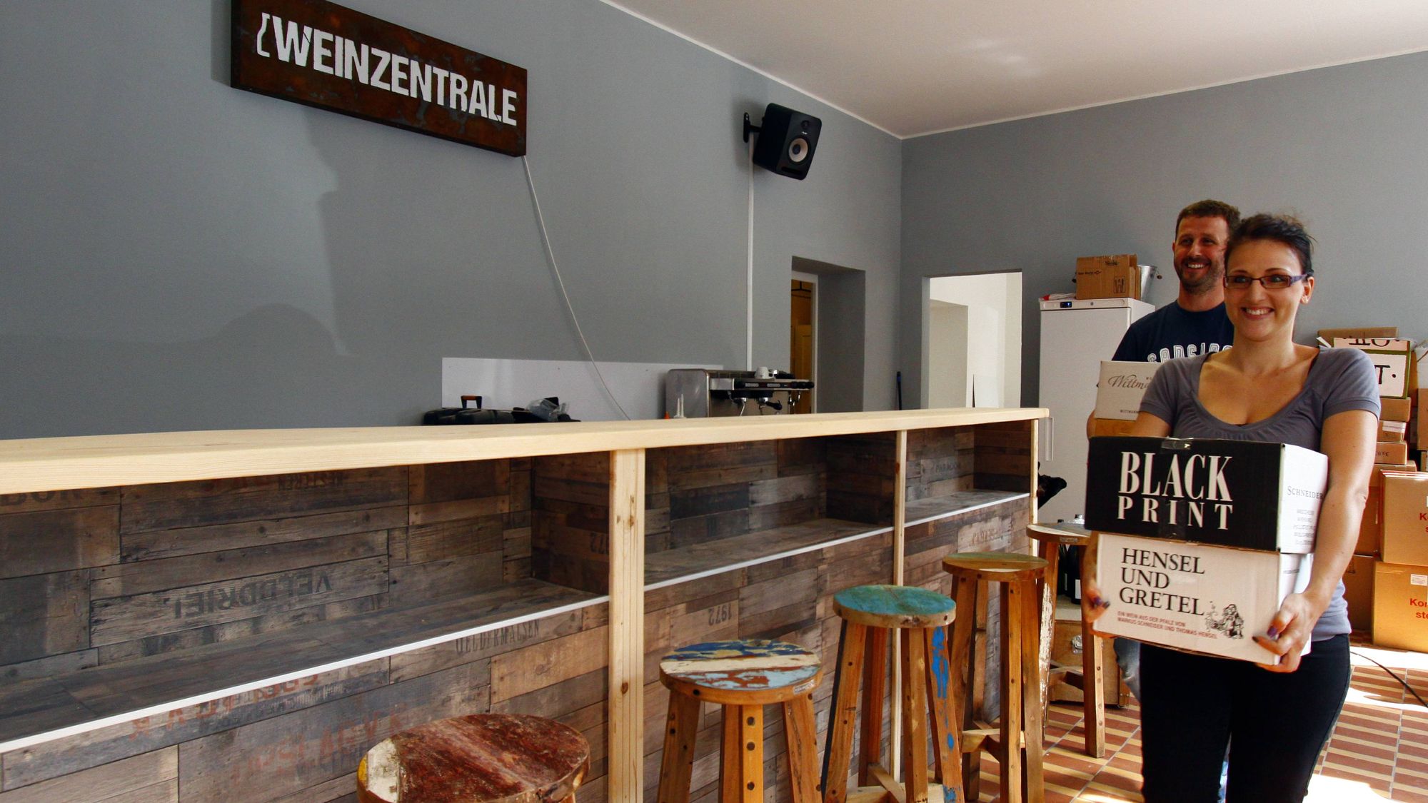 Das Weinzentrale-Team: Jana Schüller und Jens Pietzonka – Foto: Youssef SafwanAm kommenden Montag eröffnet Jens Pietzonka auf der Hoyerswerdaer Straße die „Weinzentrale“. Er hat den alten Lampenladen gründlich umgestaltet. Von Montag bis Freitag soll es künftig hier eine Weinbar geben mit rund 500 verfügbaren Weinen und ein paar Kleinigkeiten zum satt werden.