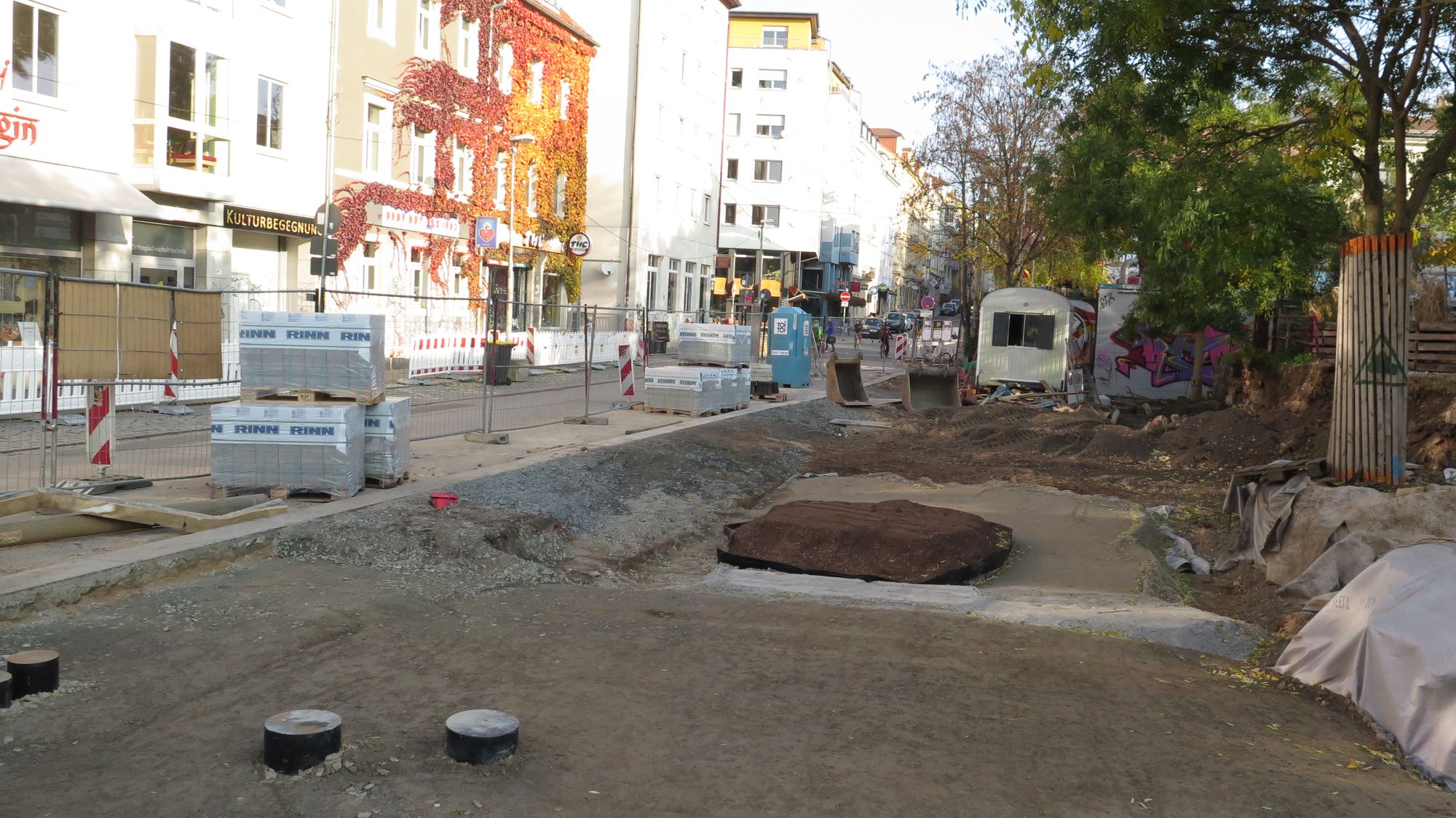 Bislang liege man gut im Zeitplan, so Undine Neubert. Beim Wegbaggern der alten Mauer sind die Arbeiter auf Kellergewölbe gestoßen. „Hier kann man gut erkennen, dass die Alaunstraße an der Stelle einst bis zum Fußweg hin bebaut war.“ Vor den Gewölben liegt ein kleiner Erdhaufen, hier soll dann künftig ein Baum stehen. Im kommenden Frühjahr soll der Platz fertig sein.