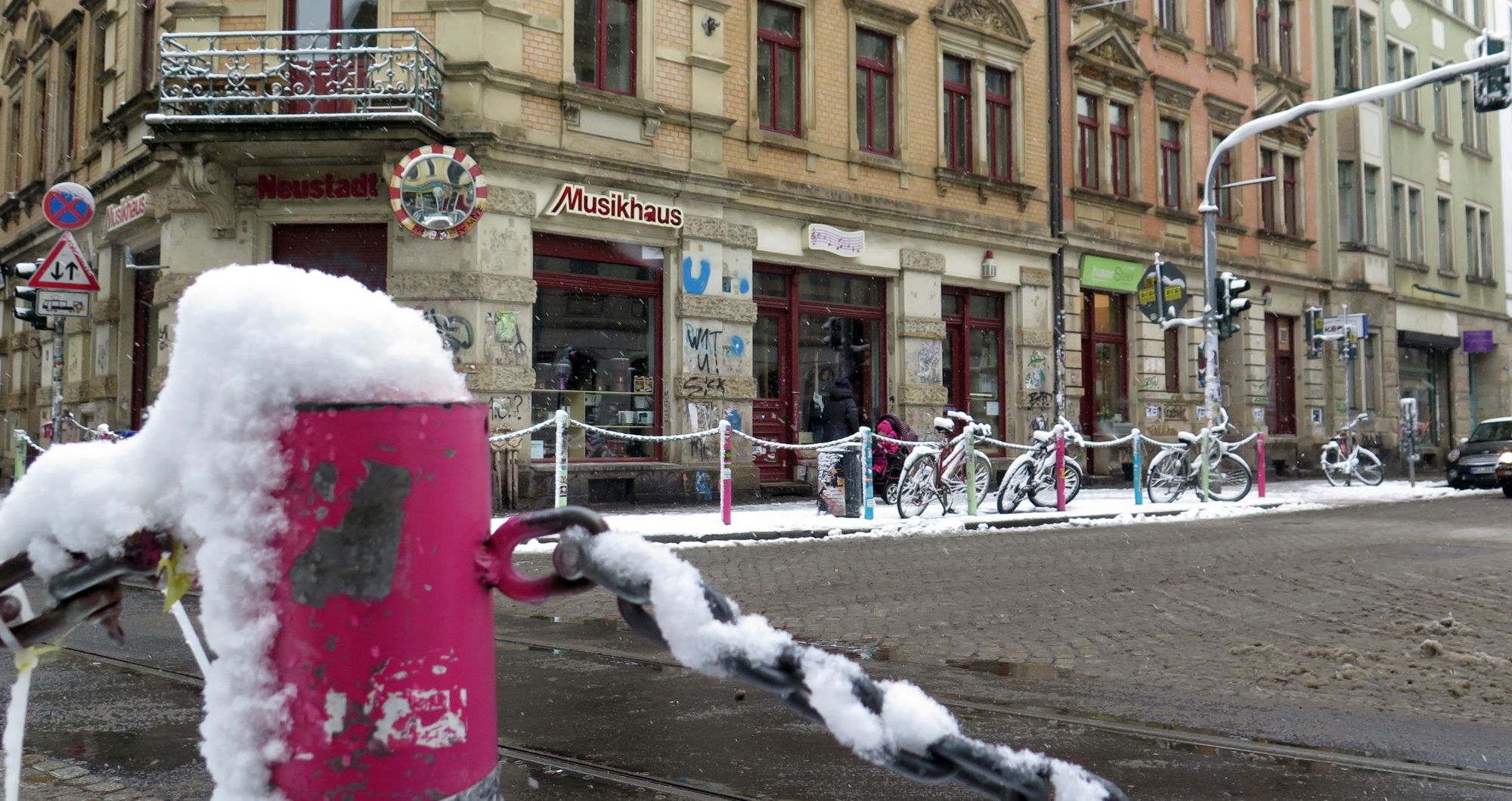 Dass die meisten Straßen in der Neustadt schon ganz gut geräumt sind, hängt mit Überstunden des Winterdienstes zusammen. Die haben gestern nach Auskunft der Stadtverwaltung bis 23 Uhr geschoben. Und sind heute bereits seit 2 Uhr wieder auf die Piste. Insgesamt kamen in der Nacht zwischen 15 bis 20 Zentimeter Neuschnee herunter bei Temperaturen um Null Grad.