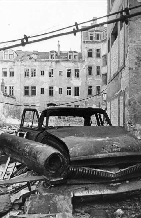Mein ausgebrannter Wolga stand im Hinterhof der Sebnitzer Str. 7, die Häuserfront im Hintergrund ist die Görlitzer… das 5. Bild zeigt die Baulücke durch die man in die Hinterhöfe der Sebnitzer fahren konnte.