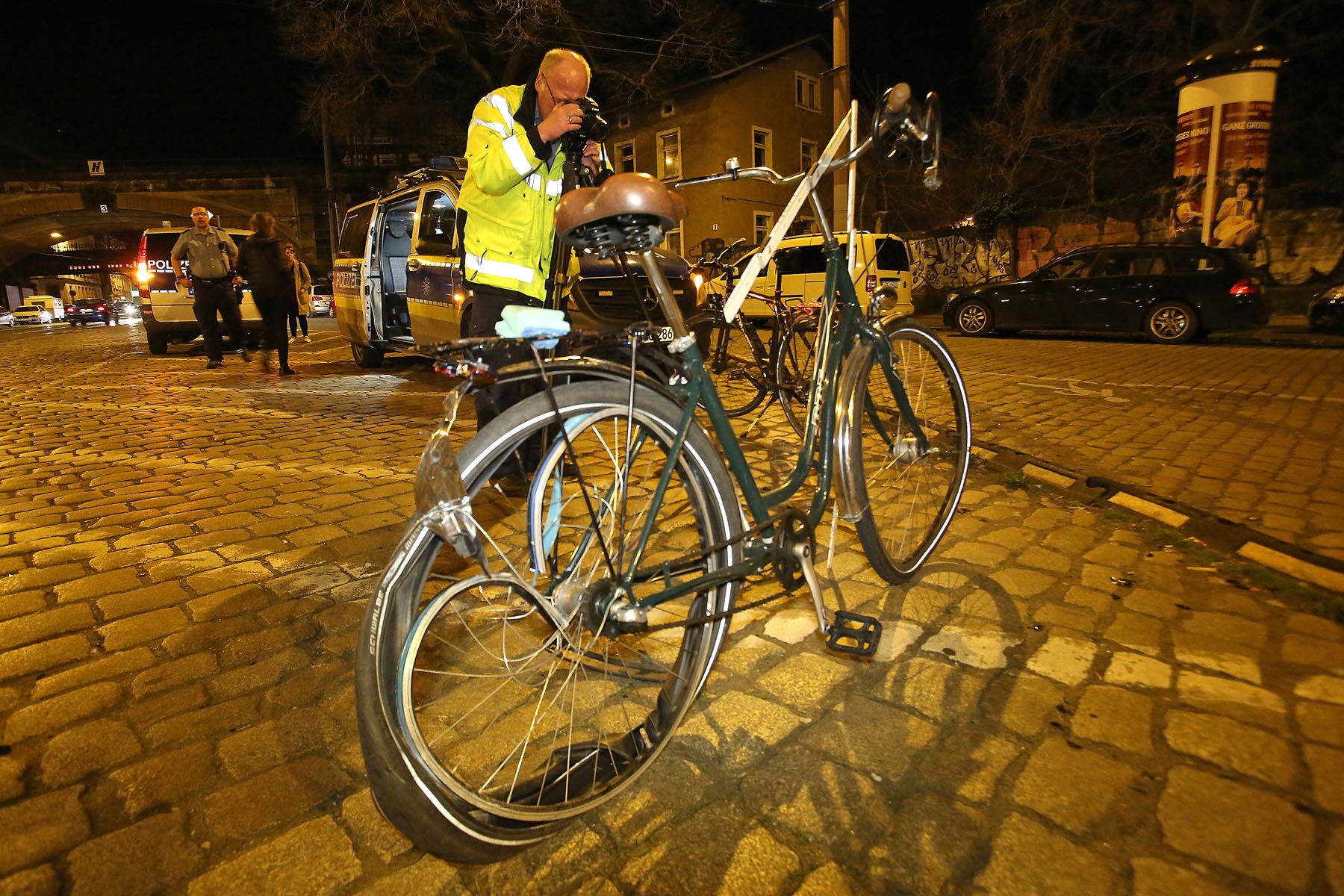 In Höhe der Straßenbahnhaltestelle an der Kreuzung zur Rudolf-Leonhard-Straße erfasste sie zwei Radfahrer. Dabei wurde eine Frau so schwer verletzt, dass sie ins Krankenhaus eingeliefert werden musste. Der Radfahrer wurde nur leicht verletzt.