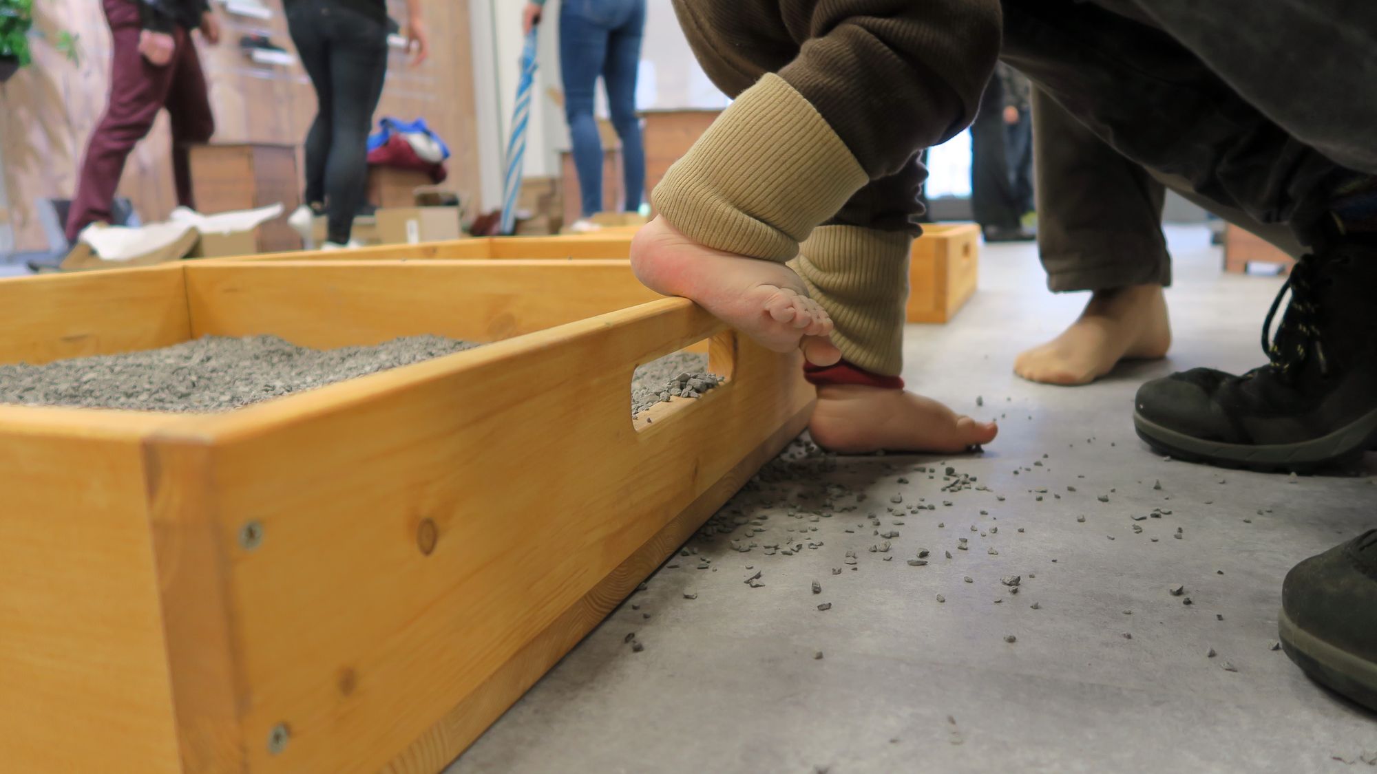 Eigentlich soll man in dem Testparcours die Schuhe ausprobieren. Doch es taugt auch als Spielplatz.