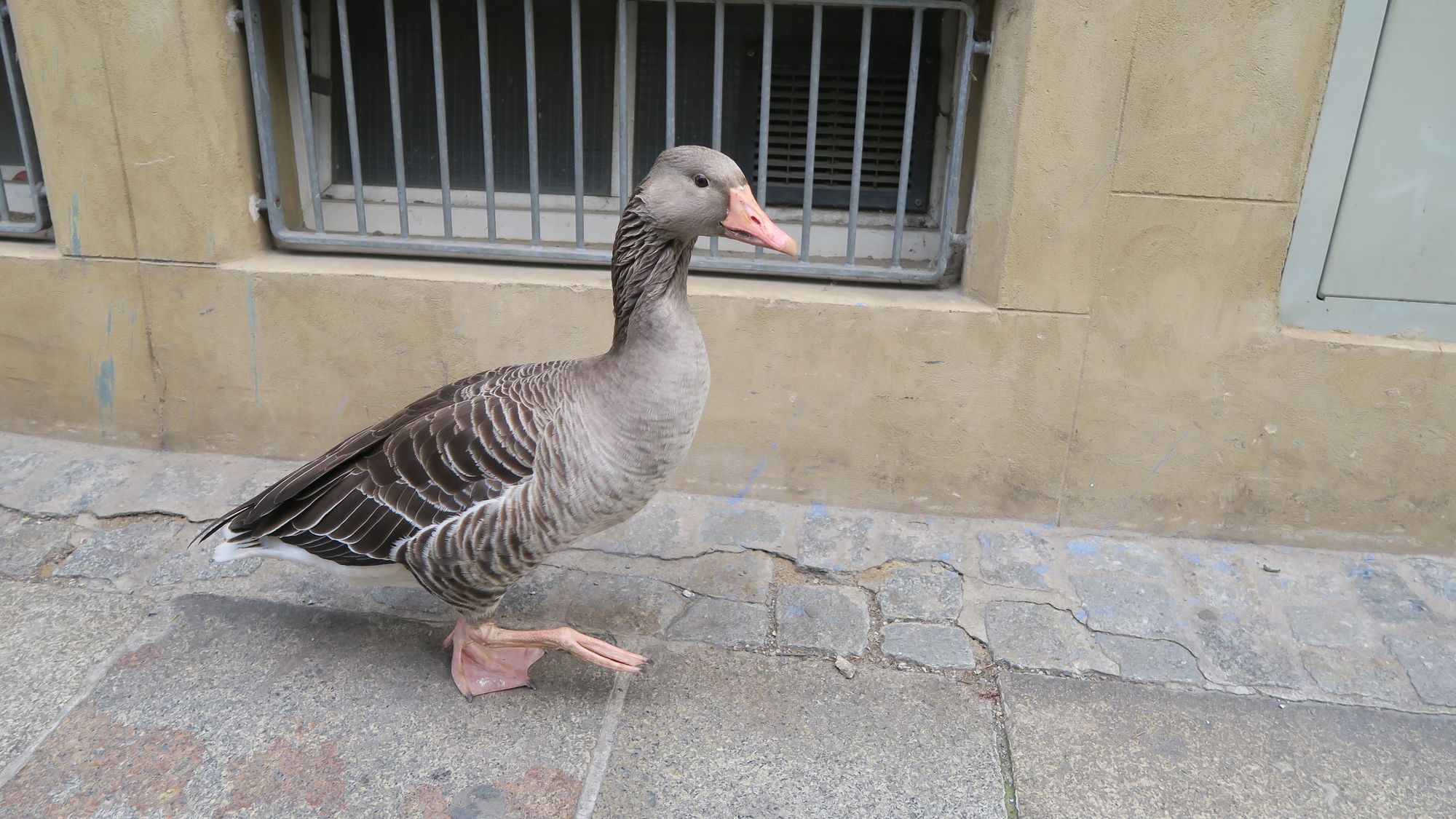 Das gute Tier versuchte mehrmals zu starten, kam aber nicht in die Luft. Währenddessen ließ sich eine andere Gans auf einem Dach in der Nachbarschaft nieder und gab schreiend Orientierungshilfe. Aufmerksame Anwohner informierten die Feuerwehr und kamen mit einem Schälchen Wasser und getrocknetem Brot.