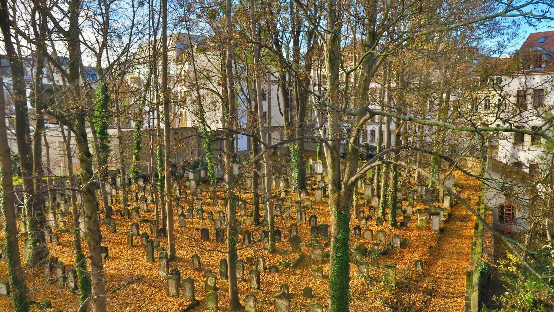 Der Alte Jüdische Friedhof erstreckt sich von der Pulsnitzer Straße bis zu den Hinterhöfen der Prießnitzstraße. Der Friedhof ist die älteste erhaltene jüdische Begräbnisstätte in Sachsen, er wurde 1751 gegründet und 1869 geschlossen. Im Unterschied zu christlichen oder kommunalen Friedhöfen bleiben auf jüdischen Friedhöfen die Gräber über Jahrhunderte erhalten. Das führt dazu, dass manche Friedhöfe dann irgendwann „voll“ sind und geschlossen werden, wie eben dieser. Ein Besuch ist immer auch eine Zeitreise, bitte beachten, Männer müssen auf dem Friedhof eine Kopfbedeckung tragen.