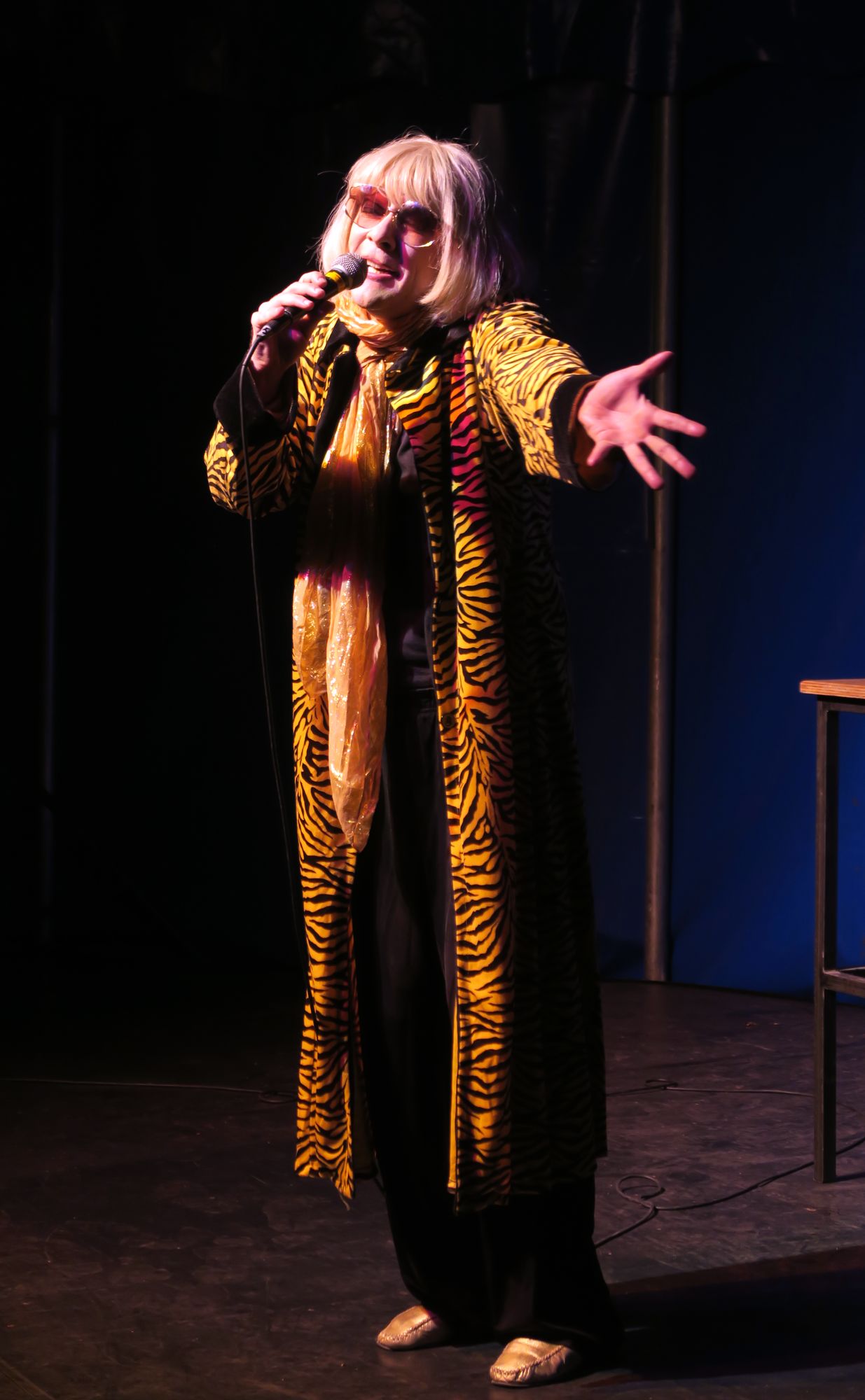 Man sieht ihr die 92 Jahr überhaupt nicht an.Also ab ins blaue Zelt. Meine flinke Begleiterin hat sich durch die Massen gemogelt und gestikuliert nun wild am Eingang. „Er gehört zu mir“ – na, das ist doch aber der falsche Schlager. Dann bin ich drinnen und die Show beginnt. Ich hatte diesen Kreuzberger Star der Unterhaltungsbranche schon vor sieben Jahren sehen dürfen und stelle nun fest. Das Alter kann ihr nichts anhaben. Sie rockt und ist mit den Pointen auf der Höhe der Zeit. Spätestens als sie den Smash-Hit „Gelbe Nelken“ anstimmt, rast das Publikum.