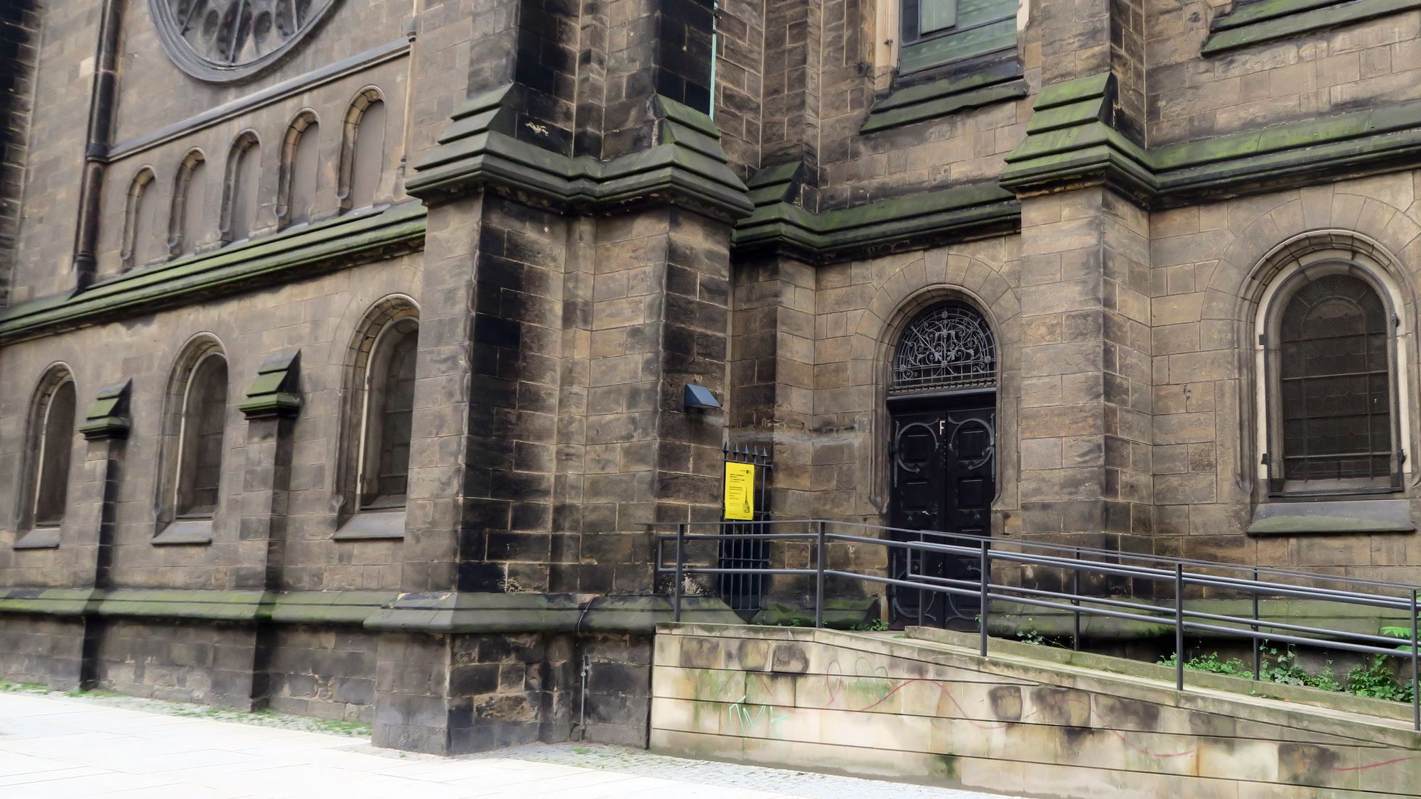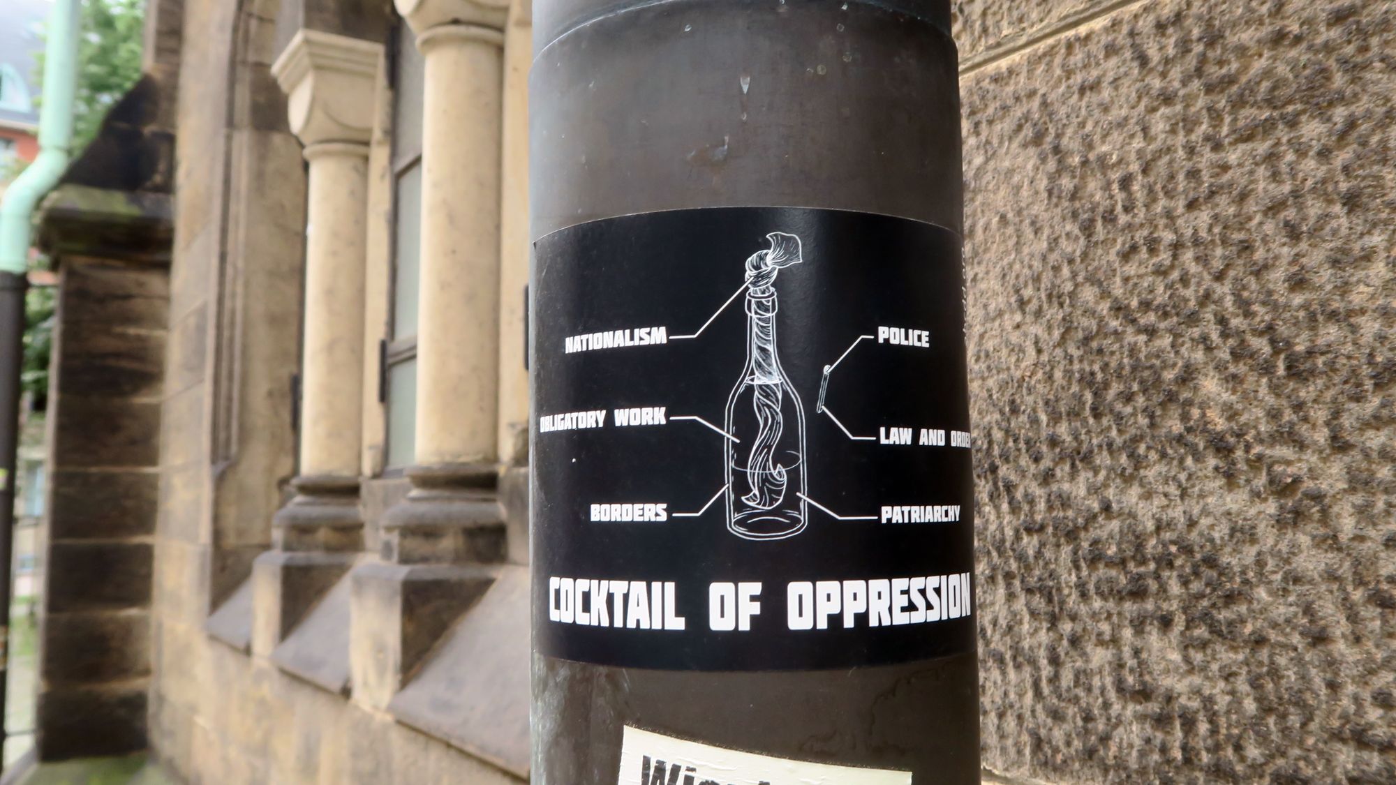 An einem Fallrohr an der Nordseite hat die Kriminal-Polizei zwei Aufkleber festgestellt, die „neu“ seien. So berichtet es Eckehard Möller. Der eine Aufkleber zeigt zwar eine Art Molotow-Cocktail, ist aber wohl eher eine allgemeine Kritik als ein konkreter Gewaltaufruf. Der andere Aufkleber bezieht sich auf Prag. „Unsere Ermittler sehen dort derzeit keinen Zusammenhang“, betonte Polizeisprecher Marko Laske gegenüber Radio Dresden. Die Kirche werde immer wieder beschmiert oder mit Stickern beklebt. (Siehe Neustadt-Geflüster vom 18. November 2014). Man ermittelt in alle Richtungen, habe aber noch keinen konkreten Verdacht, sagte Laske. Der Anschlag könne aus jeder Richtung gekommen sein. Solche sogenannten Molotow-Cocktails sind Flaschen, die mit einer brennbaren Flüssigkeit gefüllt sind, typischerweise mit einem Gemisch aus leichtentzündlichen Benzin und zähflüssigem Öl.
