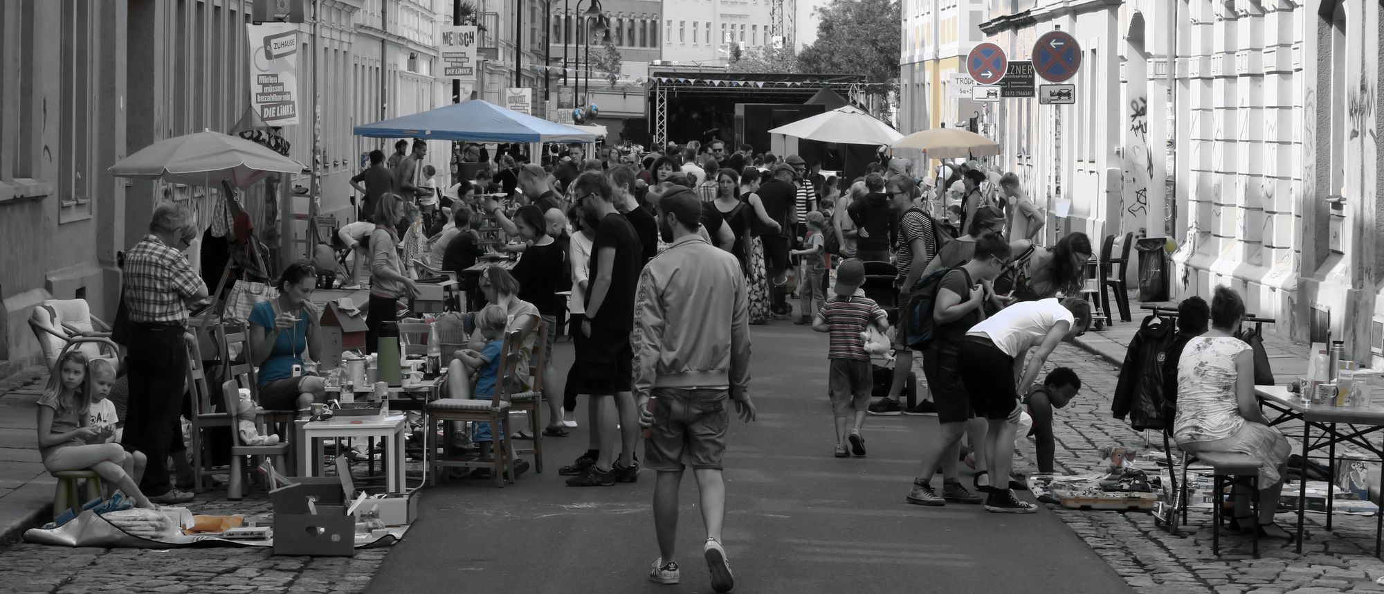 Zum Mittag hin rollen sich die letzten Schluckhechte aus den Betten und aalen sich auf der Straße. Einen Sonntag kann man wohl nicht schöner als auf dem Hechfest verbringen. Frühstückstafeln auf dem Trottoir, große Hunde, echte Punks und eine Menschenvielfalt, die so träge wie Softeis in der Sonne die Straßen entlang bummelt.