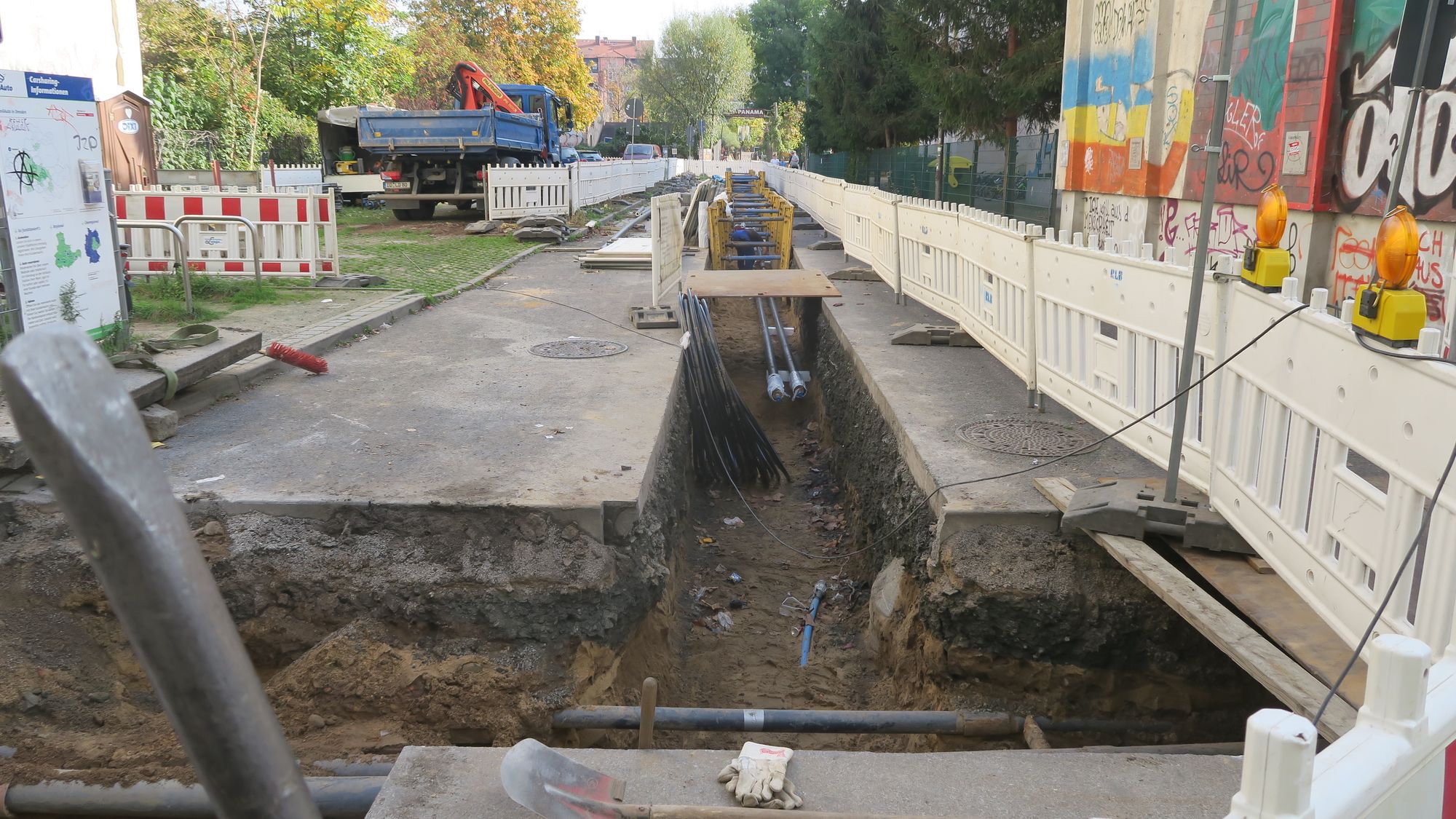 Der Grund für die Vollsperrung sind Arbeiten an der Seifhennersdorfer Straße. Die Dresdner Stadtwerke (Drewag) verlegen wegen eines geplanten Neubau auf dem Grundstück Görlitzer Straße 16 die Fernwärme- und die Stromleitungen in die Seifhennersdorfer Straße um. Zusätzlich werden Fernmelde-Leerrohre mit verlegt.