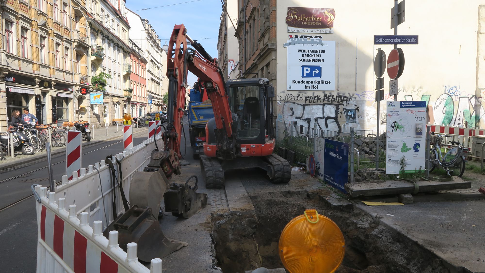 Die Kamenzer Straße wäre ohnehin nicht geeeignet als Ausweich, denn das wegen „Baukran“ gesperrte Ende ist ja auch Einbahnstraße, in die genau entgegengesetzte Richtung.