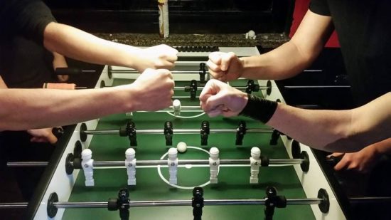 Beim Tischfussball wird zu viert gespielt.Der Vorstandsvorsitzende Mathias Walter stellt klar: „Mittelfristig wollen wir in der Bundesliga spielen. Dafür benötigen wir Sponsoren, Förderung von öffentlicher Seite und motivierte Nachwuchsspieler.“
