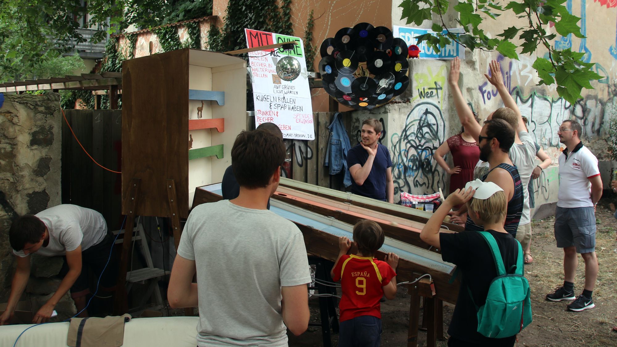 Nun entdecke ich weitere herrliche Kleinigkeiten. Nein, wie ein Stadtfest ist die BRN noch lange nicht. Man achte nur auf die herrlichen handgemachten Flamingo-Schirme im Vogelschutzgebiet oder die Milonga an der Sebnitzer Straße oder die Waffeln am Stiel, die mir ein paar kleine Mädels lautstark andrehen.
