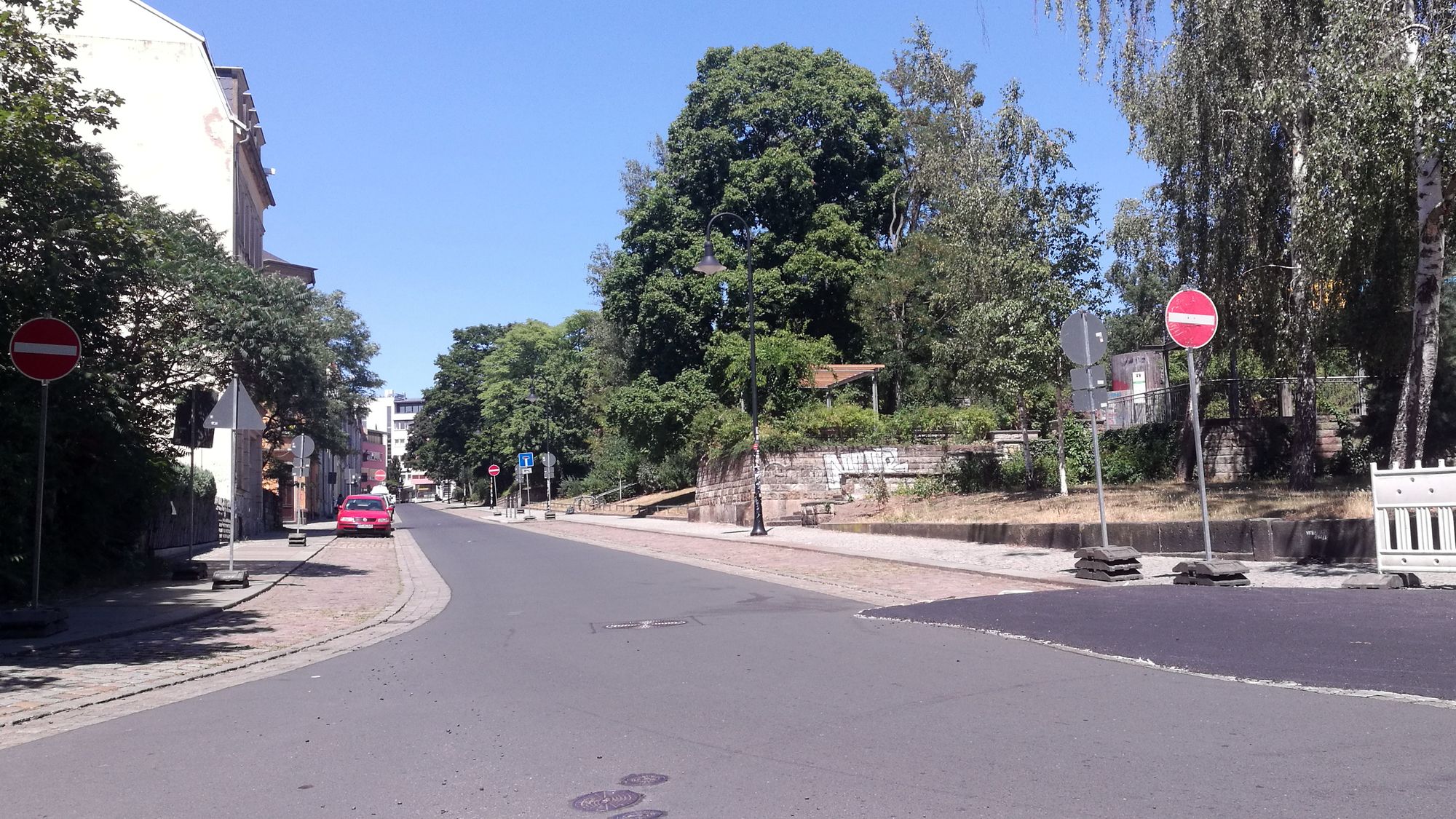 Damit die Busse dort gut durchkommen, wurde an den engen Ecken Asphalt aufgeschüttet. Außerdem ist die Tannenstraße durch die Eisenbahnbrücke nur noch ostwärts, also in Richtung Königsbrücker befahrbar.