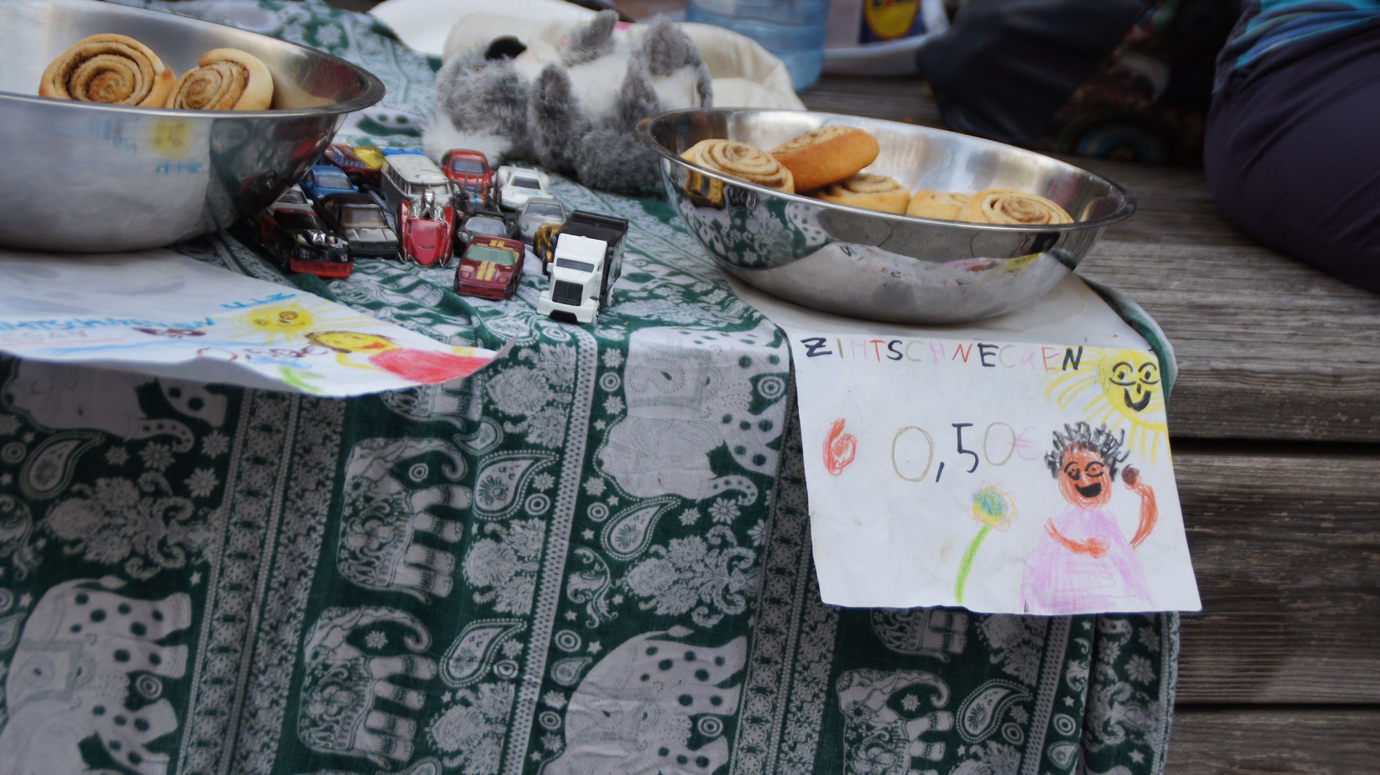 Im technoiden Garagenhof steppt am frühen Abend erst ein Bär, dafür läuft der Spielplatz Ecke Otto-Straße fast über. Biertischbankett, ein Wunderbaum mit Wunschzetteln, südamerikanische Klänge unter einem Sombrero und Vanillekuchen mit Vanillecreme und Vanillestimmung-Garantie auf Spendenbasis. Rudolf lässt sich nicht lumpen. Ich pflücke eine krakelige Portion Schbas vom Baum der Erkenntnis und stopfe Herzchenmuffins in die Taschen. Als Reserve.