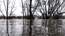 Boje ist gut, Prießnitzgrund auf Höhe der Stauffenbergallee noch komplett überschwemmt. Die kleine Brücke hält im Nichts, sozuagen.