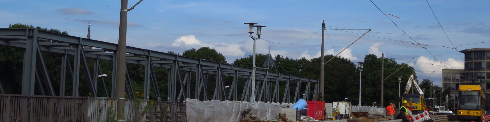 Morgen beginnt die nächste Bauphase bei Rekonstruktion der Albertbrücke. Dafür müssen die Straßenbahnen von Freitag, 18. Juli, 9 Uhr bis